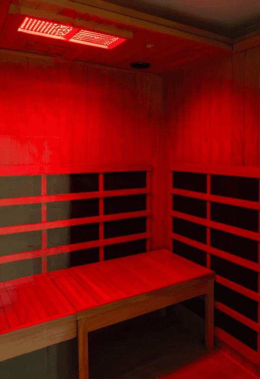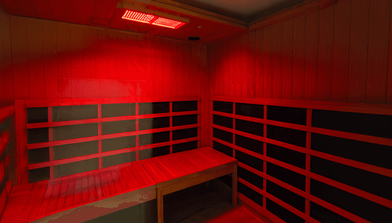 The sauna warms your body with soothing infrared light